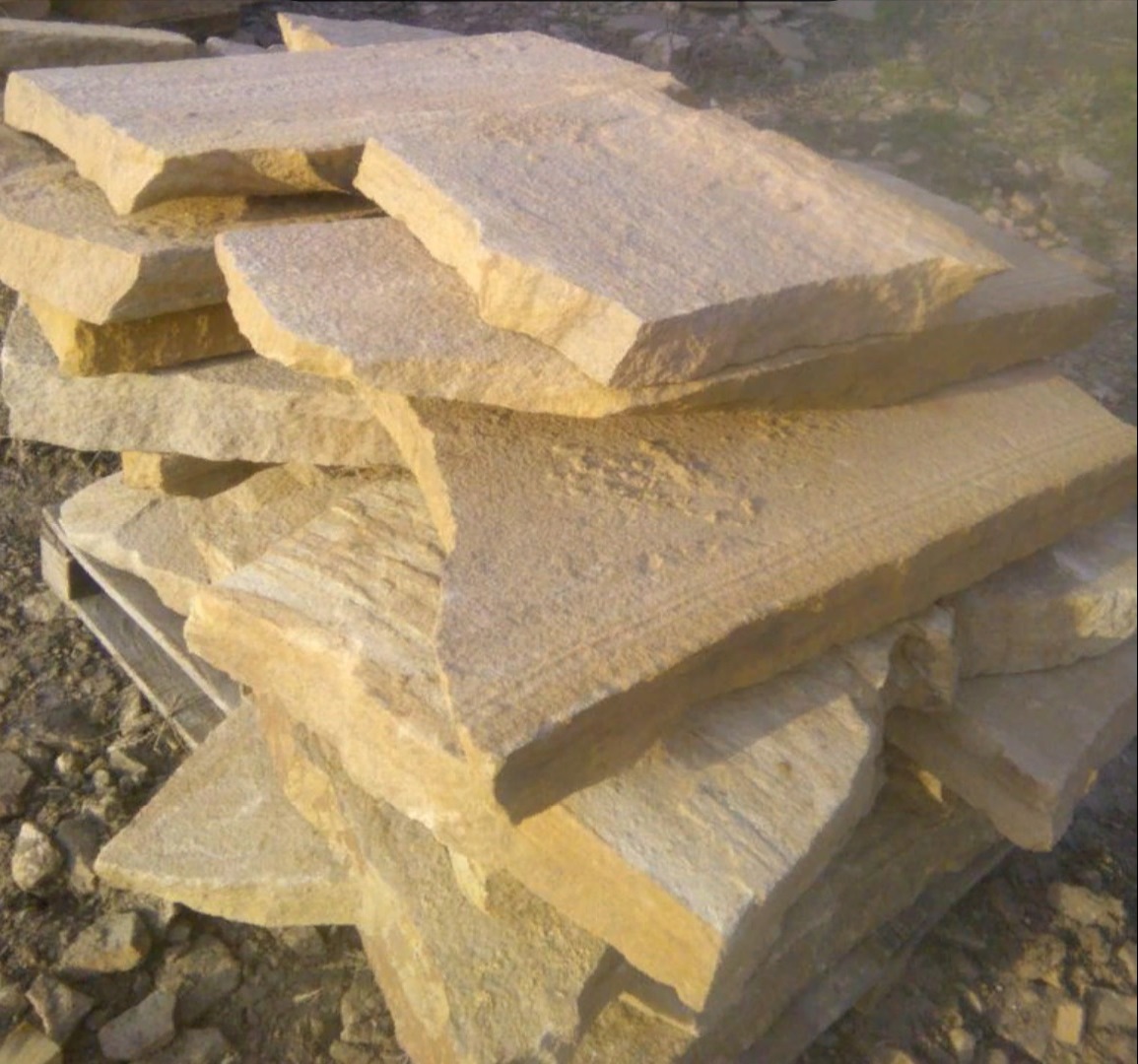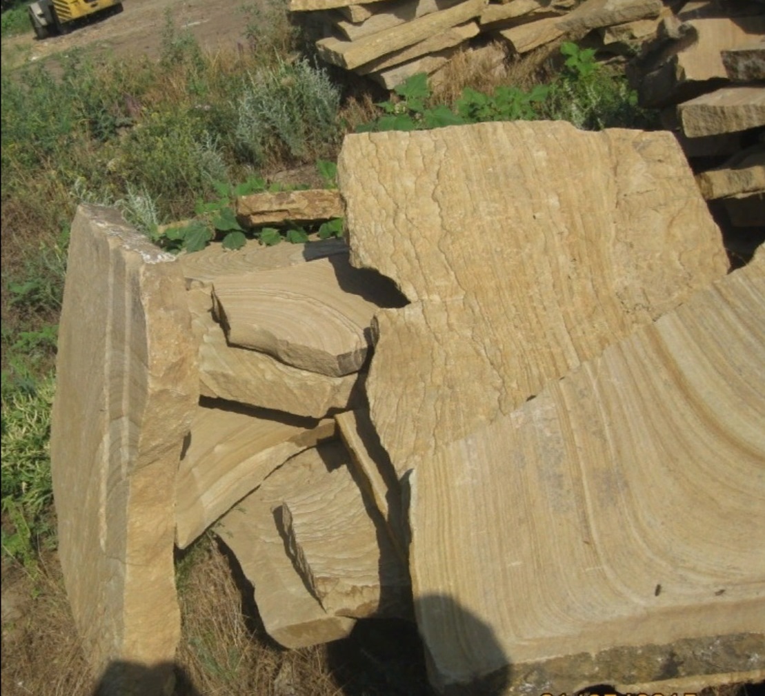 • Kamenclub.ru: Форматный камень (плаха) пошаговая дорожка от 70-150 см (4 -12 см)  купить в Крыму плитняк  форматный плаха желтый песчаник 9 000 руб/т   фото КАМЕНЬ КЛУБ